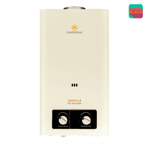 Calefont Gas Licuado Mademsa 8 Litros Tiro Natural Ionizado Essential 8 Eco GL Blanco