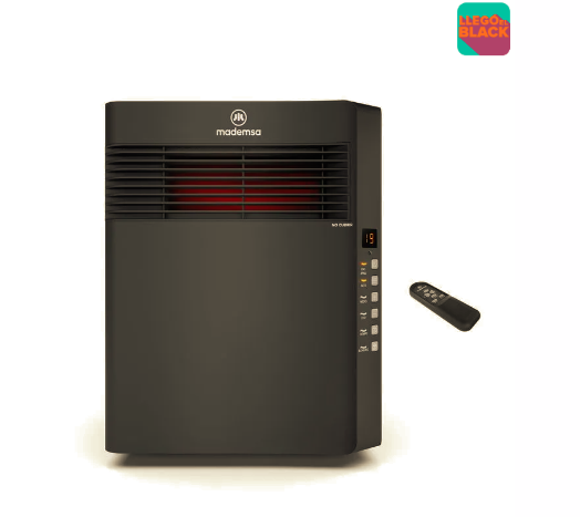 Estufa Eléctrica Infrarroja Mademsa 1500W Digital, Modo Eco y Control Remoto INF10 Negra