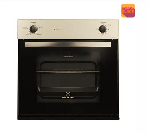 HORNO EMPOTRABLE ELÉCTRICO MADEMSA M SPAZIO 110 A – NEGRO CON LUZ INTERIOR Y GRILL El horno empotrable eléctrico M SPAZIO 110 A de Mademsa te brindará el espacio que necesitas para realizar grandes preparaciones para toda tu familia, con su capacidad de 66 litros podrás realizar gran variedad de preparaciones sin que nadie quede fuera. El horno cuenta con una cavidad esmaltada, que facilitará su limpieza, incluyendo la remoción de la suciedad; además su puerta es desmontable para que la suciedad no quede ni en los espacios más difíciles. Su puerta de cristal templado con doble vidrio te permitirá que no pierdas de vista a tus alimentos y además, te ayudará a ahorrar energía mientras mantiene la temperatura de la puerta más baja. Todo esto en un elegante diseño acabado en negro con un panel de acero inoxidable ¡el horno que buscabas para tu familia! GARANTÍA: Este producto cuenta con una garantía de 1 año. SERVICIO EXCLUSIVO MADEMSA: Accede al Servicio de Asistencia Integral, la red de especialistas en electrodomésticos más grande de Chile.